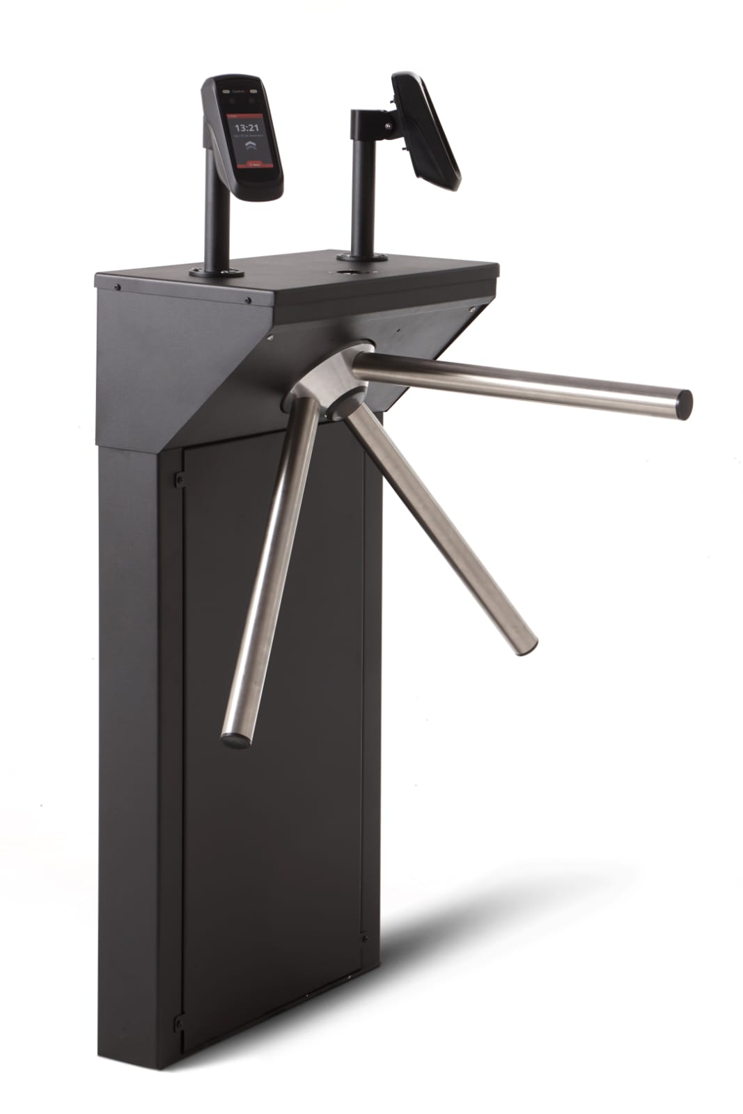 Catraca revolucionária com design único e até dois iDFaces instalados, que controlam tanto a entrada como a saída de pessoas através da tecnologia de reconhecimento facial.